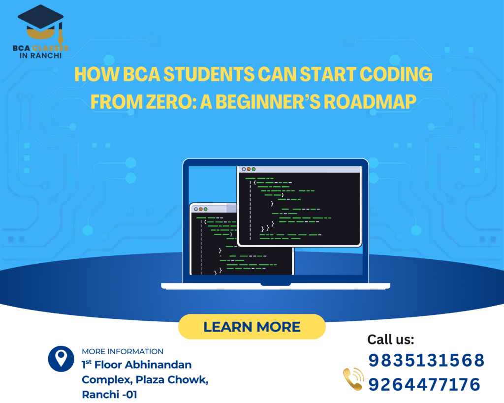 Starting coding as a BCA student can feel confusing, especially if you have no programming background. Many students think coding is only for “genius programmers,” but that is far from the truth. Coding is a skill that anyone can learn with patience, consistency, and the right roadmap. If you are a BCA student starting from zero, this guide will help you understand how to begin your coding journey step by step.